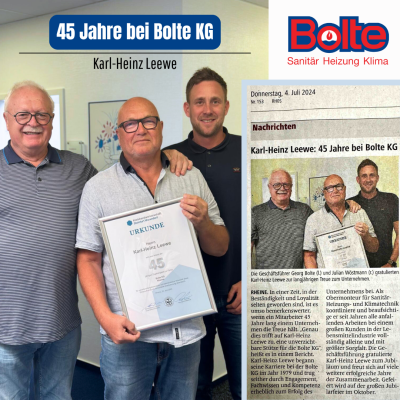 Im Namen aller möchten wir dir von Herzen danken – für deine Loyalität, deine Tatkraft und dein unermüdliches Engagement. Wir freuen uns auf viele weitere gemeinsame Erfolge und feiern dein Jubiläum gebührend auf unserer großen Bolte-Jubilarfeier im Oktober.